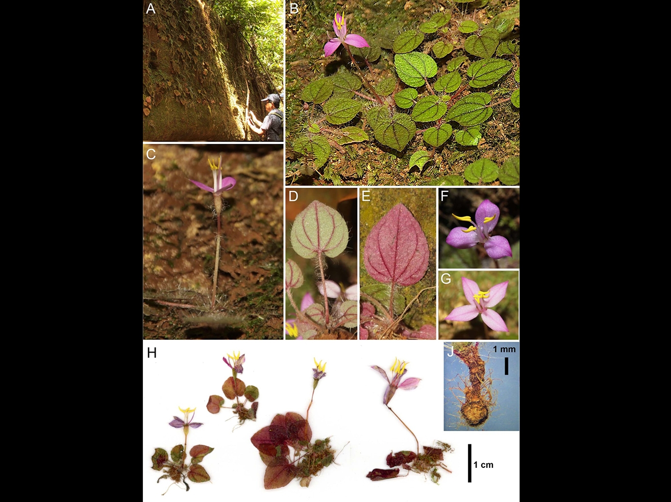 A new species, Sonerila bolavenensis (Melastomataceae), from the Bolaven Plateau, southern Laos, is described and illustrated. Sonerila bolavenensis is easily recognized by its tiny stature up to 3 cm tall (including inflorescence), small ovate to rounded leaves 0.3–1.4 × 0.35–1 cm, petioles 0.2–0.8 cm long, and 1-flowered inflorescence. A vernacular name and preliminary conservation status are provided.