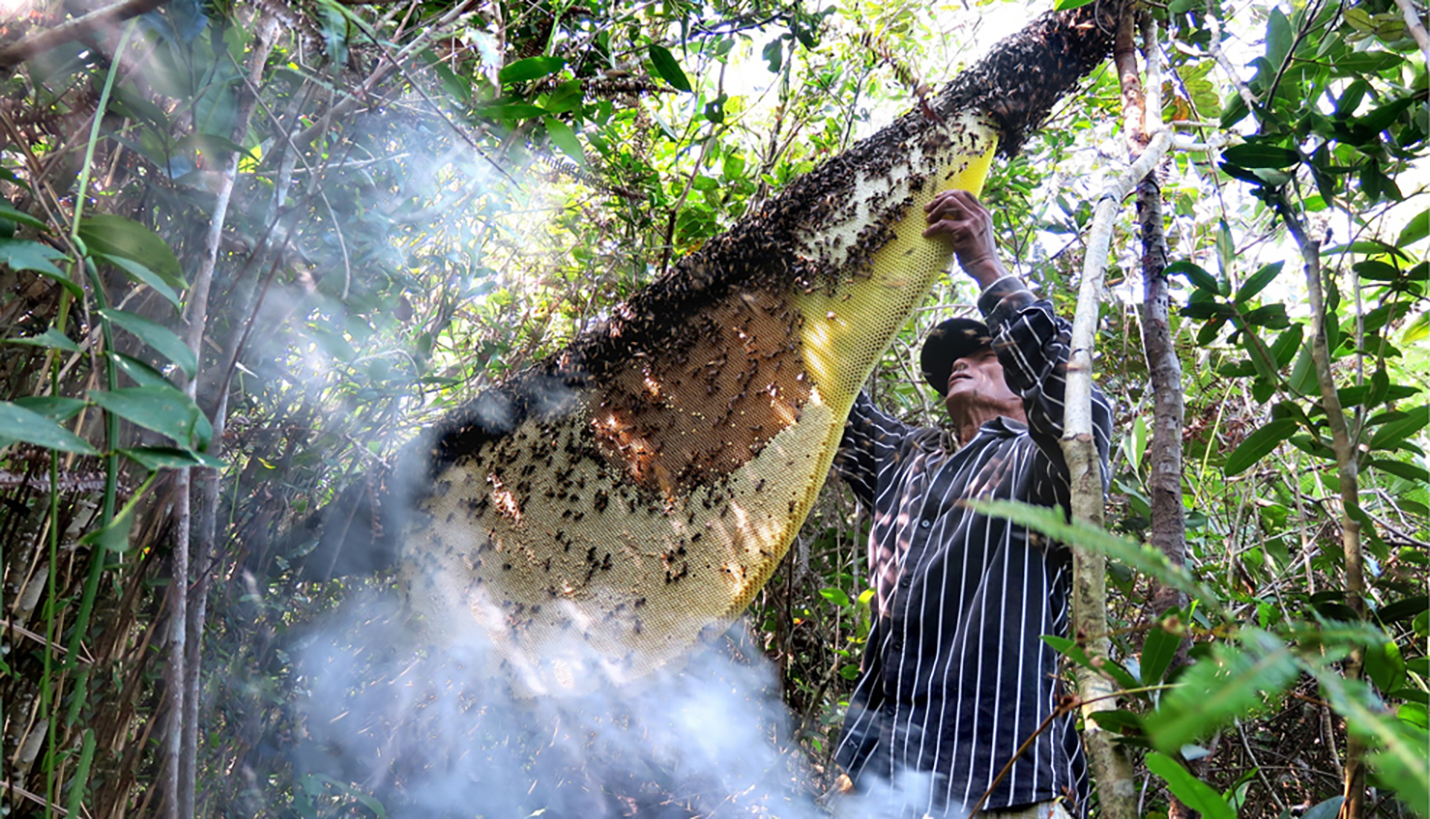 Eric Guerin, is a French biologist specialized in Southeast Asian native bee conservation and sustainable beekeeping. Based in Cambodia since 2008, Eric has been working closely with honey hunters and small-scale beekeepers throughout Southeast Asia. In his exploration of sustainable beekeeping and wild honey collection approaches, he paid special attention to a technic empirically developed by several communities in Southeast Asia.