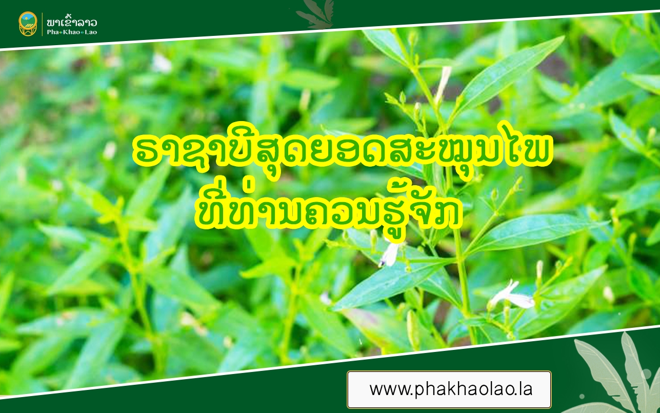 ທັງຕົ້ນ, ສົດ ຫຼື ແຫ້ງ ໃຊ້ເປັນຢາຮັກສາອາການຖອກທ້ອງ, ຮັກສາລຳໄສ້ອັກເສບ, ແກ້ໄຂ້ຮ້ອນ, ແກ້ອາການຮ້ອນໃນ, ແກ້ເຈັບຫົວ, ນອກນີ້ຍັງໃຊ້ປົວຕຸ່ມຄັນ ແລະ ປົວພະຍາດເບົາຫວານ. ໃບຣາຊາບີນຳມາບົດປະສົມກັບນ້ຳມັນພືດທາບາດແຜນ້ຳຮ້ອນລວກ ແລະ ໄຟໄໝ້, ໃບສົດນຳມາຍ້ຳກິນນ້ຳແກ້ຄໍອັກເສບ, ເຈັບຄໍ ແລະ ມີສັບພະຄຸນໃນການຮັກສາສັດໄດ້ ເຊັ່ນ: ແກ້ທ້ອງບິດ, ລຳໄສ້ອັກເສບໃນລູກໝູ, ແກ້ພະຍາດຂີ້ຂາວໃນເປັດ, ແກ້ປາກເປື່ອຍ ແລະ ພະຍາດຂາອ່ອນຂອງລູກເປັດ. www.phakhaolao.la