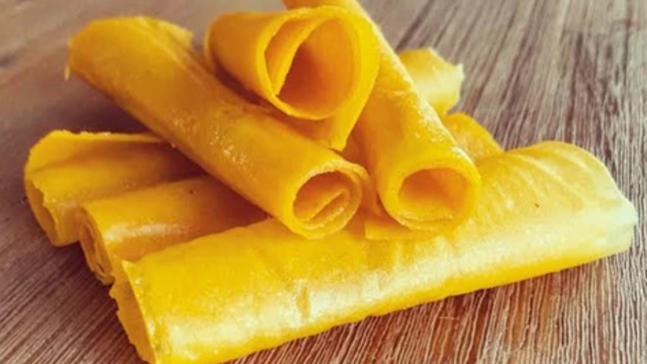 5. Make a roll of every piece of mango to keep it in the jar or plastic bag for serving. Available to keep for long or make to be a gift for guest or friend.