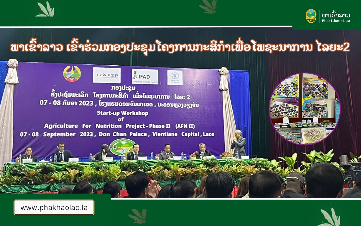 ໃນວັນທີ 7-8 ກັນຍາ 2023, ພາເຂົ້າລາວ ໄດ້ເຂົ້າຮ່ວມກອງປະຊຸມສຳມະນາກ່ຽວກັບການເລີ່ມຕົ້ນໂຄງການກະສິກຳເພື່ອໂພຊະນາການ – ໄລຍະ II (AFN II) ທີ່ໄດ້ຮັບທຶນຈາກໂຄງການອາຫານໂລກ (WFP), ກອງທຶນສາກົນເພື່ອການພັດທະນາກະສິກຳ (IFAD) ແລະ ລັດຖະບານ ແຫ່ງ ສປປ ລາວ. ກອງປະຊຸມດັ່ງກ່າວໄດ້ມີຜູ້ເຂົ້າຮ່ວມທັງໝົດ 200 ກວ່າຄົນ ໂດຍຈັດຂື້ນຢູ່ທີ່ດອນຈັນພາເລດ ນະຄອນຫຼວງວຽງຈັນ.