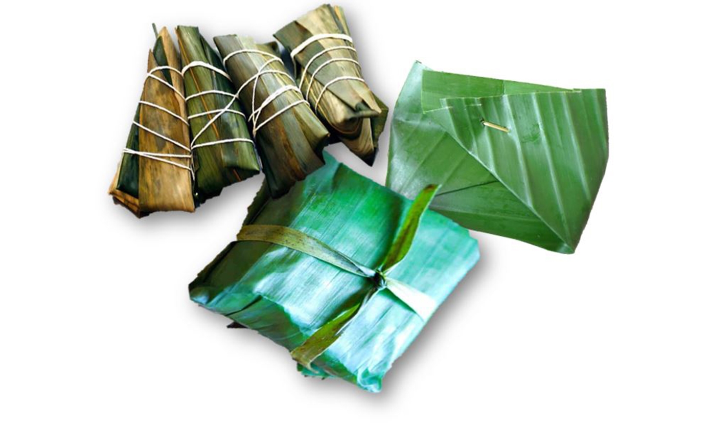 1. ຕັດໃບຕອງໃຫ້ໄດ້ຂະໜາດ 25 x 30 ຊມ (ແຕ່ລະຫໍ່ ໃຊ້ 2 ໃບ). ນຳໃບຕອງໄປຕົ້ມນ້ຳ ຈົນກ່ວາຈະອ່ອນ ເພື່ອຄວາມສະດວກ ແລະ ງ່າຍ ໃນເວລາ ຫໍ່